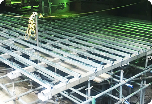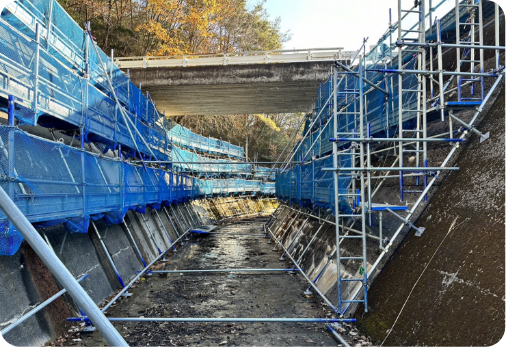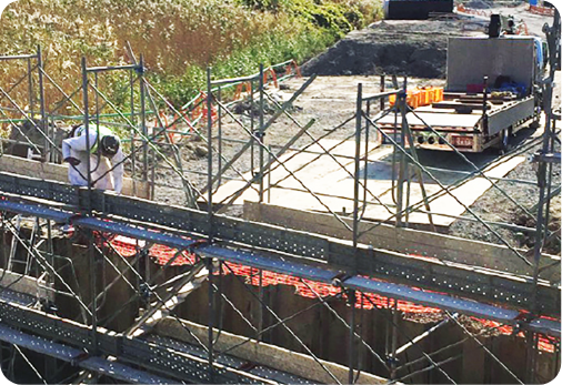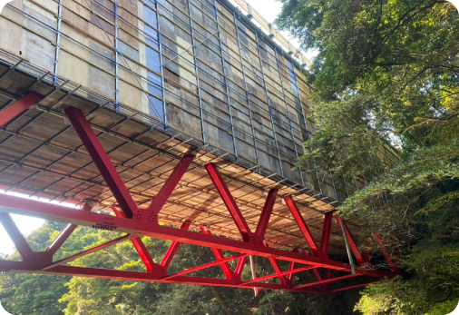 インフラ施設の長寿命化への取り組みに対応すべく、補修・補強工事の現場での仮設工事もお任せ下さい。安全安心を第一に、より良い国土づくりに貢献していきます。