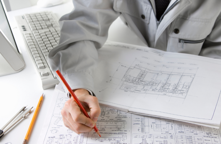 安全かつ工事を円滑に行う為の事前検討を図面化します。現場の環境に合わせ、必要な申請用の図面を作成し建築基準法や各都道府県の条例などを確認し、高性能な図面を作成します。
